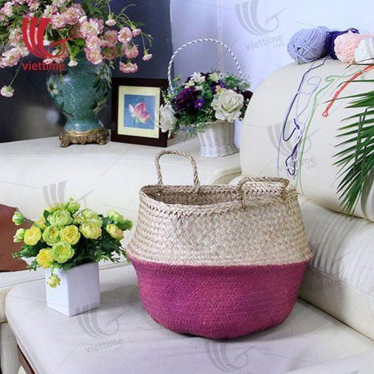 Panier à Linge Jonc de Mer Rose Fuchsia