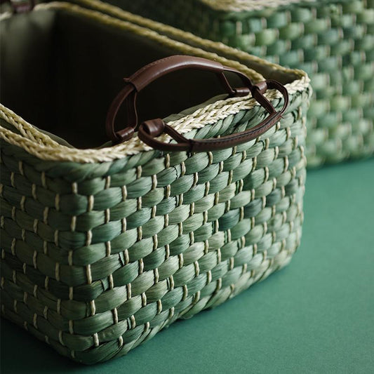 Organisez vos détergents et les assouplissants dans des bacs tissés ou des paniers en osier avec des poignées pour les transporter facilement.