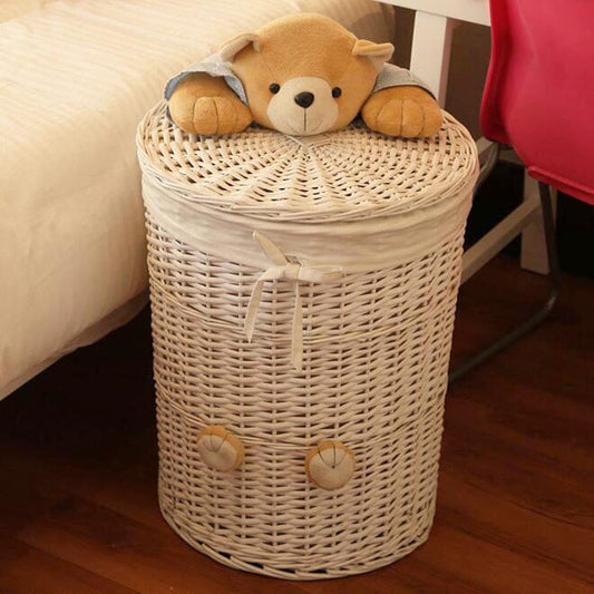 Panier à Linge en Osier Blanc <br>Corbeille Ted