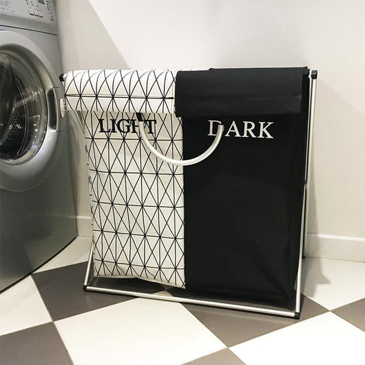 Panier à Linge 2 Compartiments Design avec Couvercle