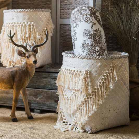 Panier à Linge en Bambou Artisanal Grädde Vitt