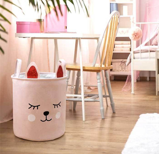 Panier à Linge Bébé Fille Rose Ours Souriant